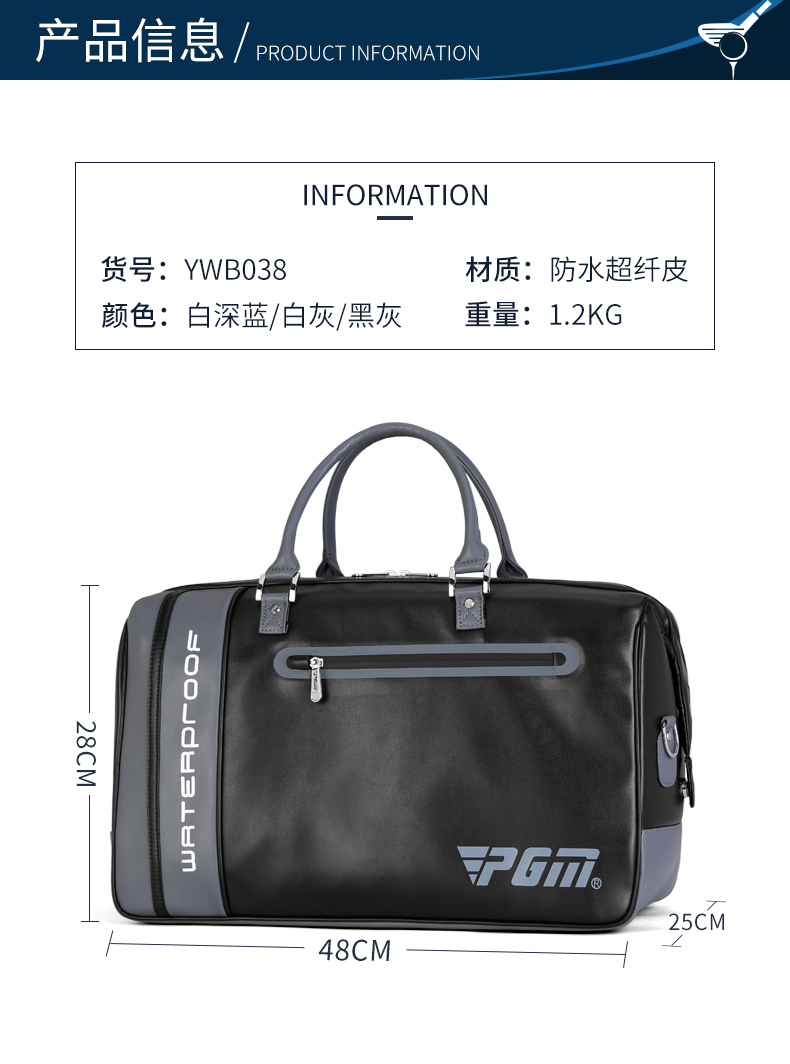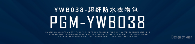 - Túi đựng đồ Golf YWB038 là mẫu túi golf da nhẹ nhất từ trước đến nay của PGM. Túi có khả năng chống nước tốt và ngăn đựng giày riêng.