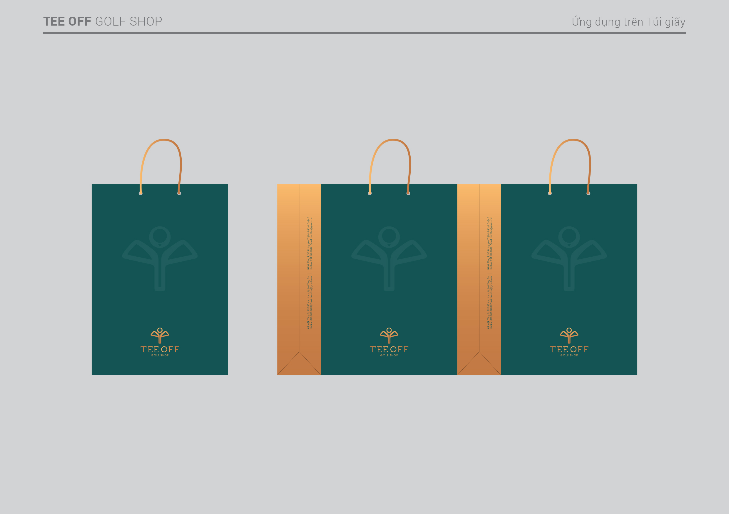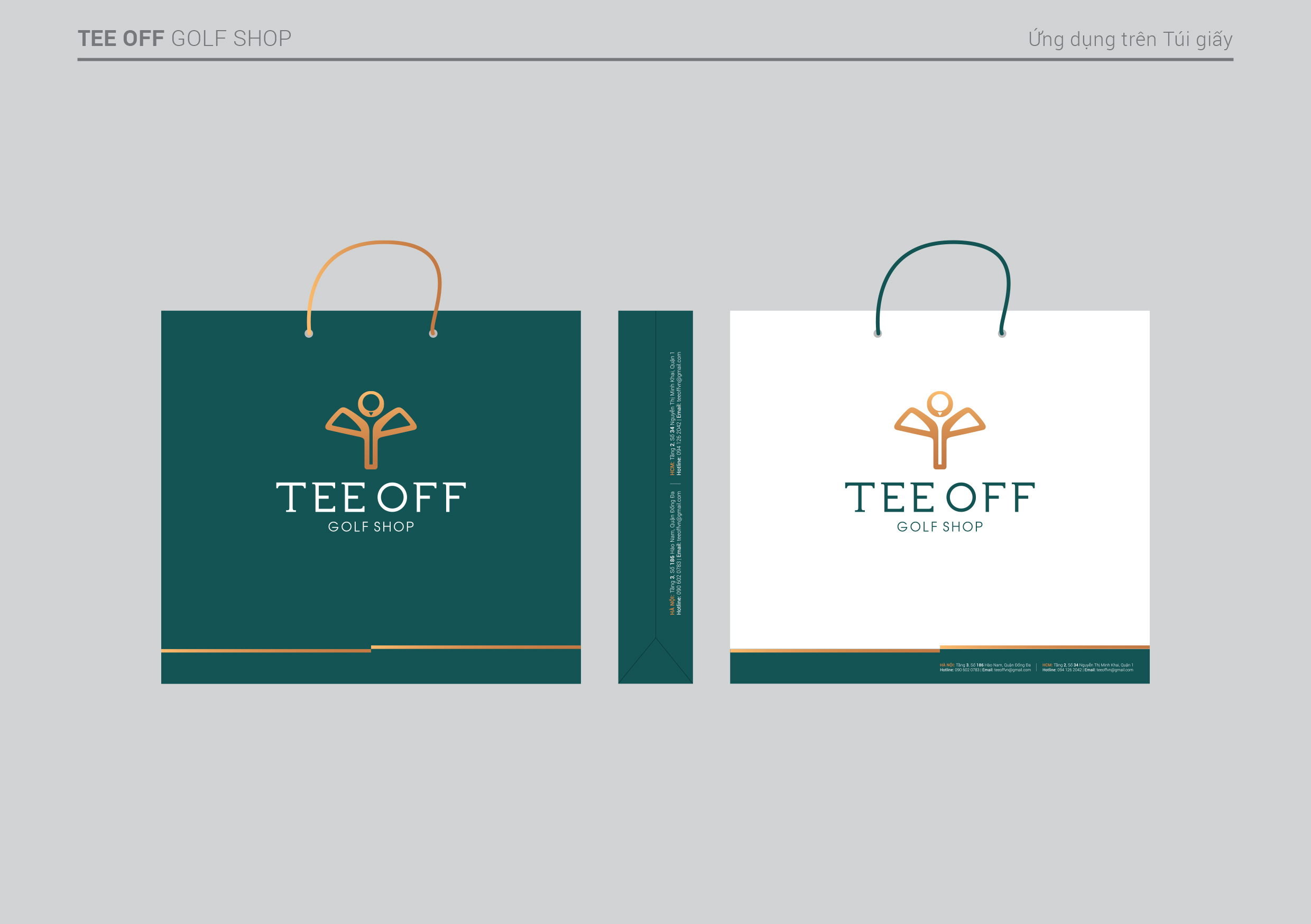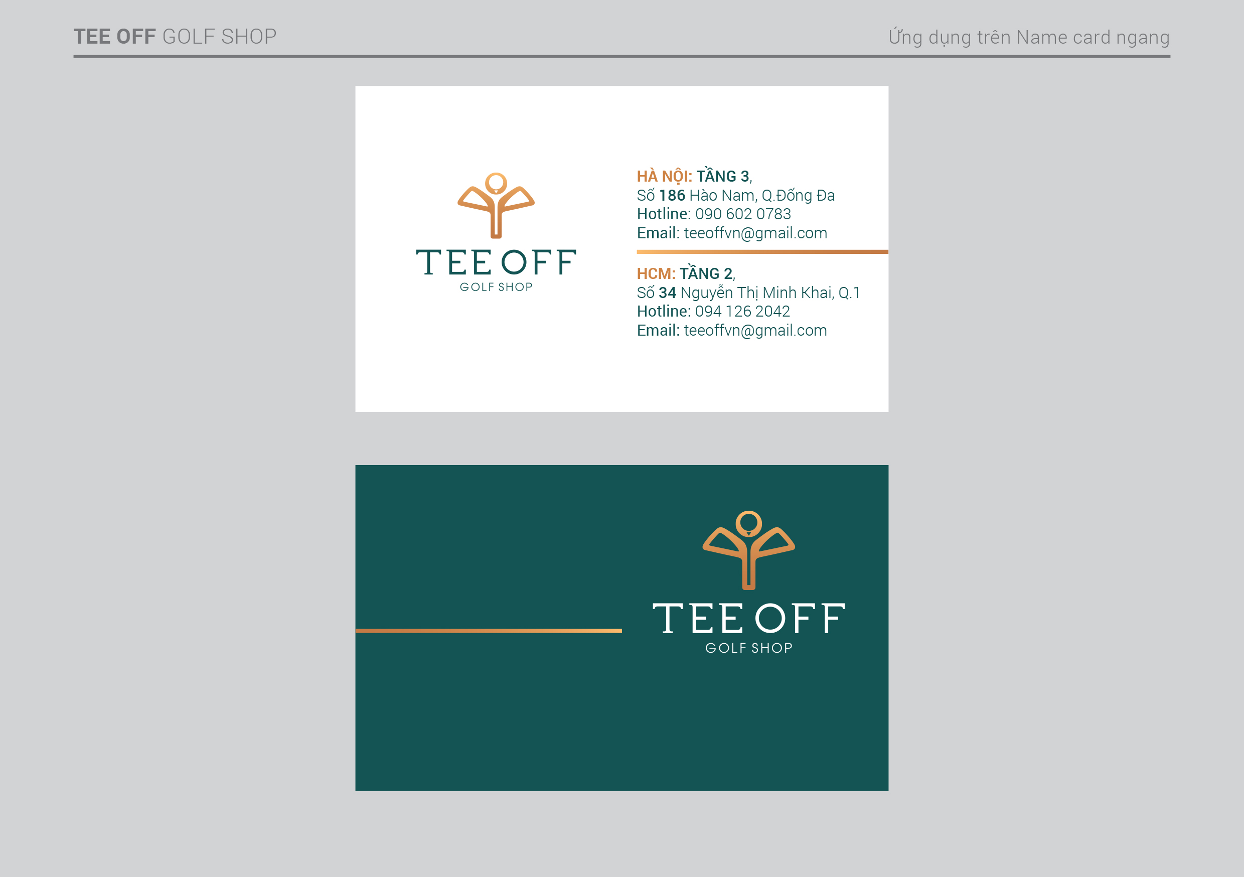 Ứng dụng rộng rãi Logo vào các ấn phẩm quen thuộc: Name Card, Túi giấy, Biển hiệu cửa hàng, Biển vẫy, Thư cảm ơn, Bì thư, Đồng phục. Với mỗi ấn phẩm đến được với tay khách hàng cũng đồng nghĩa với việc cái tên TEE OFF sẽ dần trở nên quen thuộc hơn với cộng đồng Golfer trong và ngoài nước.