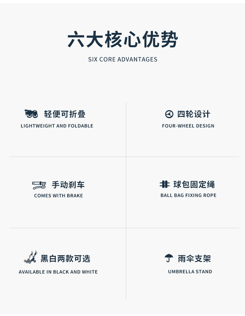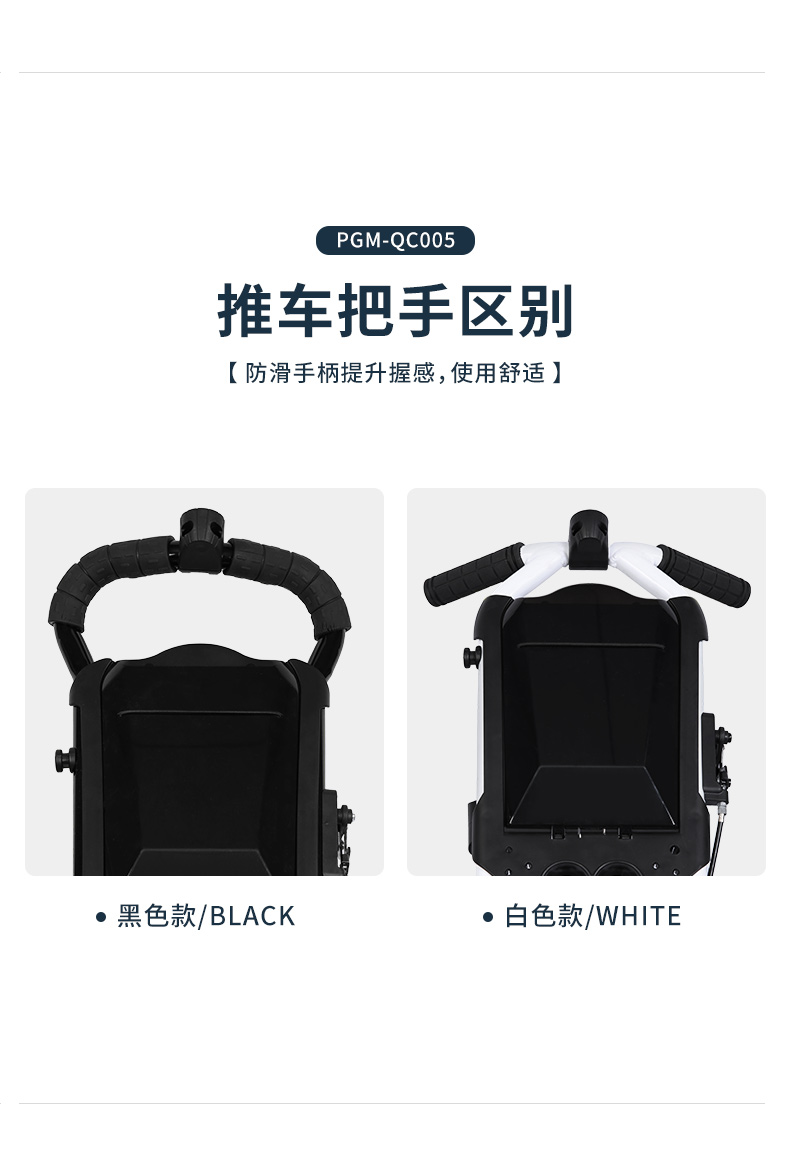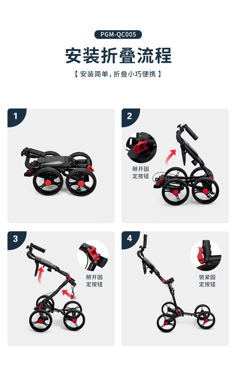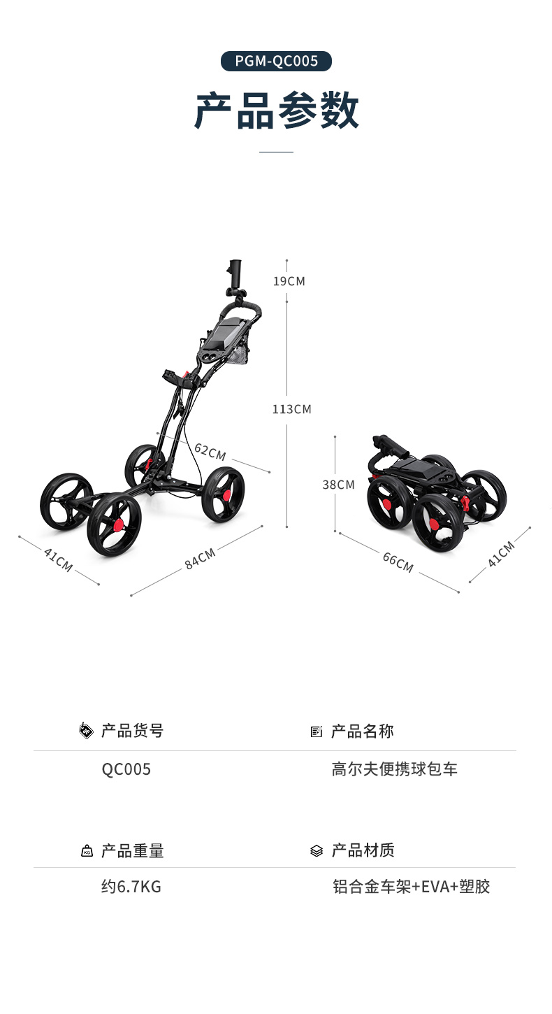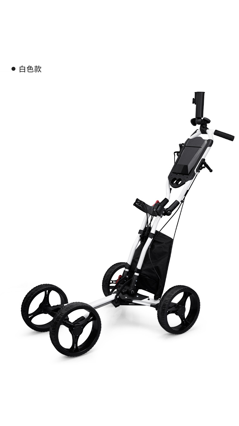 QC005 là mẫu xe đẩy túi gậy siêu nhẹ 4 bánh tiện dụng, có giá để ô, túi đựng bóng.