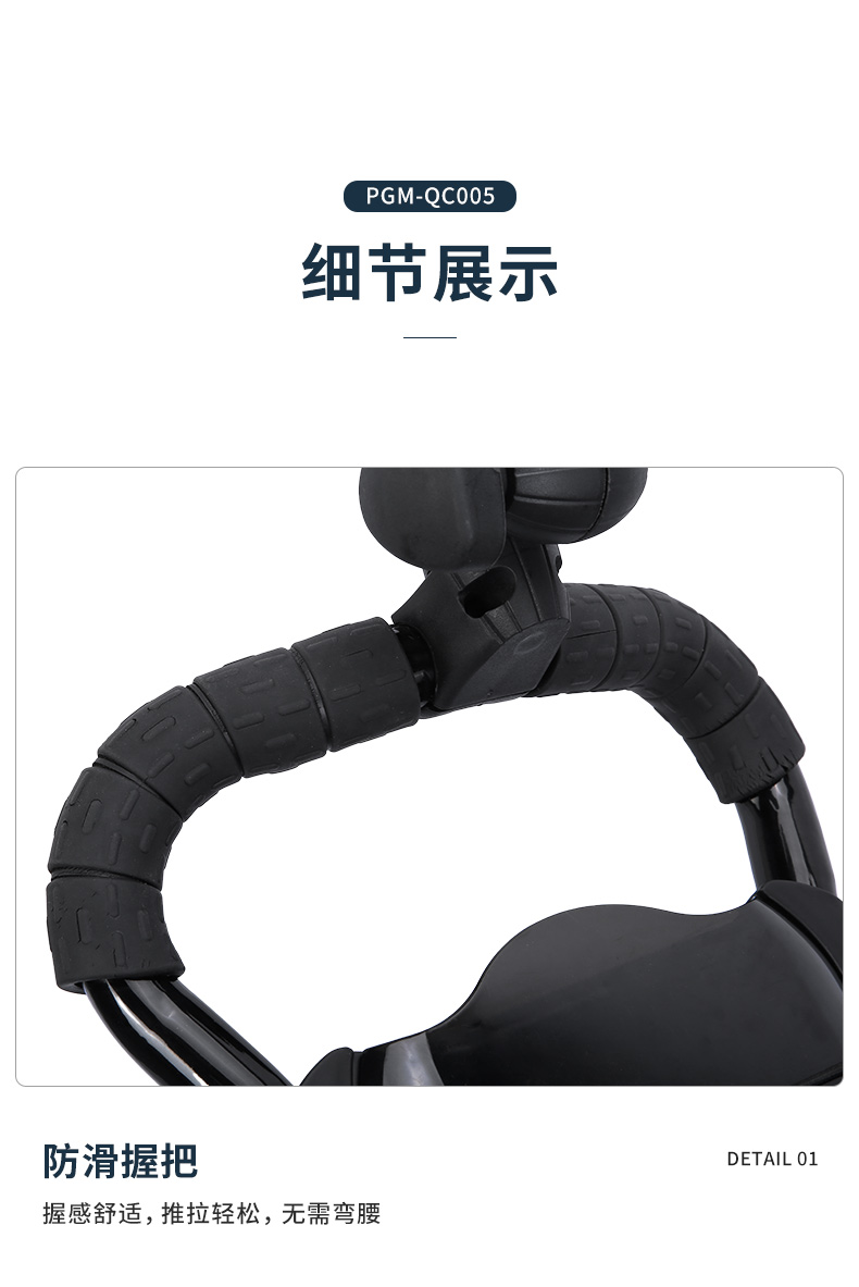 - Xe đẩy QC005 được làm từ chất liệu hợp kim nhôm cao cấp, chắc chắn và bền đẹp.